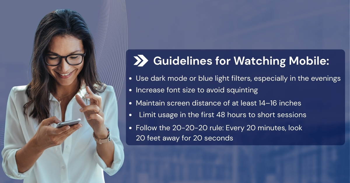 Mobile use is generally safe within a day or two after surgery—but overuse can lead to eye fatigue, especially when held too close to your face.
