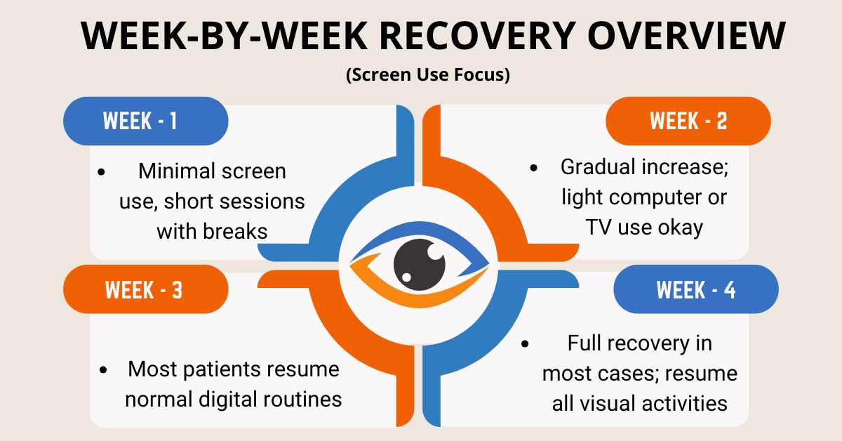 Because of these temporary symptoms, your eye doctor may give specific advice on limiting screen exposure, especially in the first 24–48 hours.